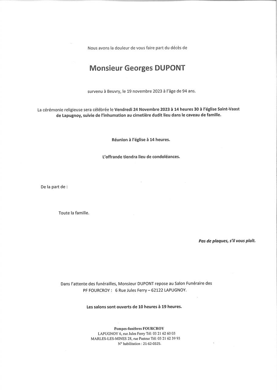 Décédé à Beuvry (62660, France) le dimanche 19 novembre 2023 à l'âge de 94 ans