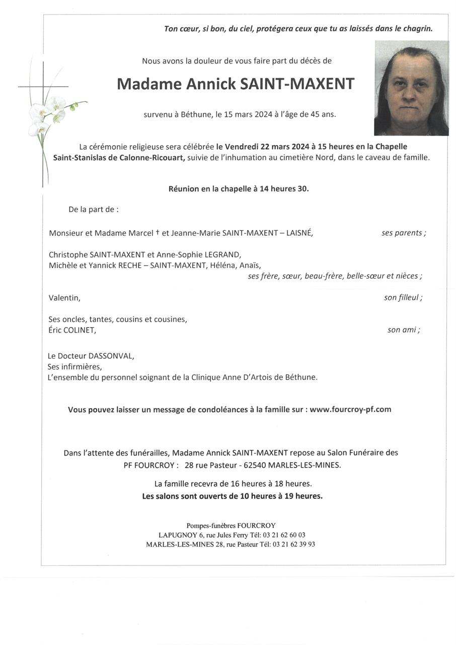 Madame Annick SAINT-MAXENT