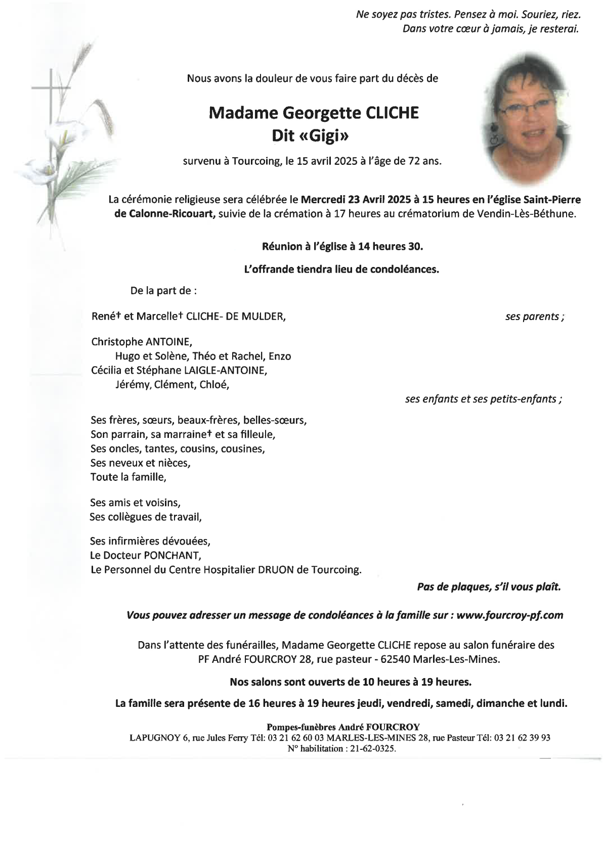 Décédé à Tourcoing (59200, France) le mardi 15 avril 2025 à l'âge de 72 ans
