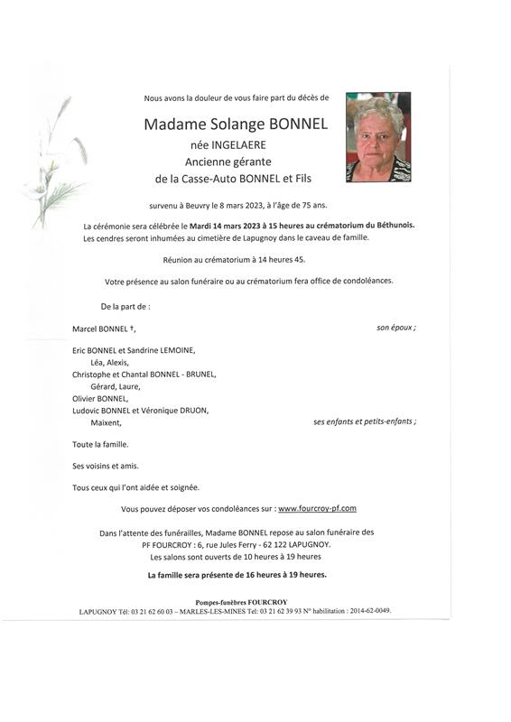 Madame Solange BONNEL née INGELAERE