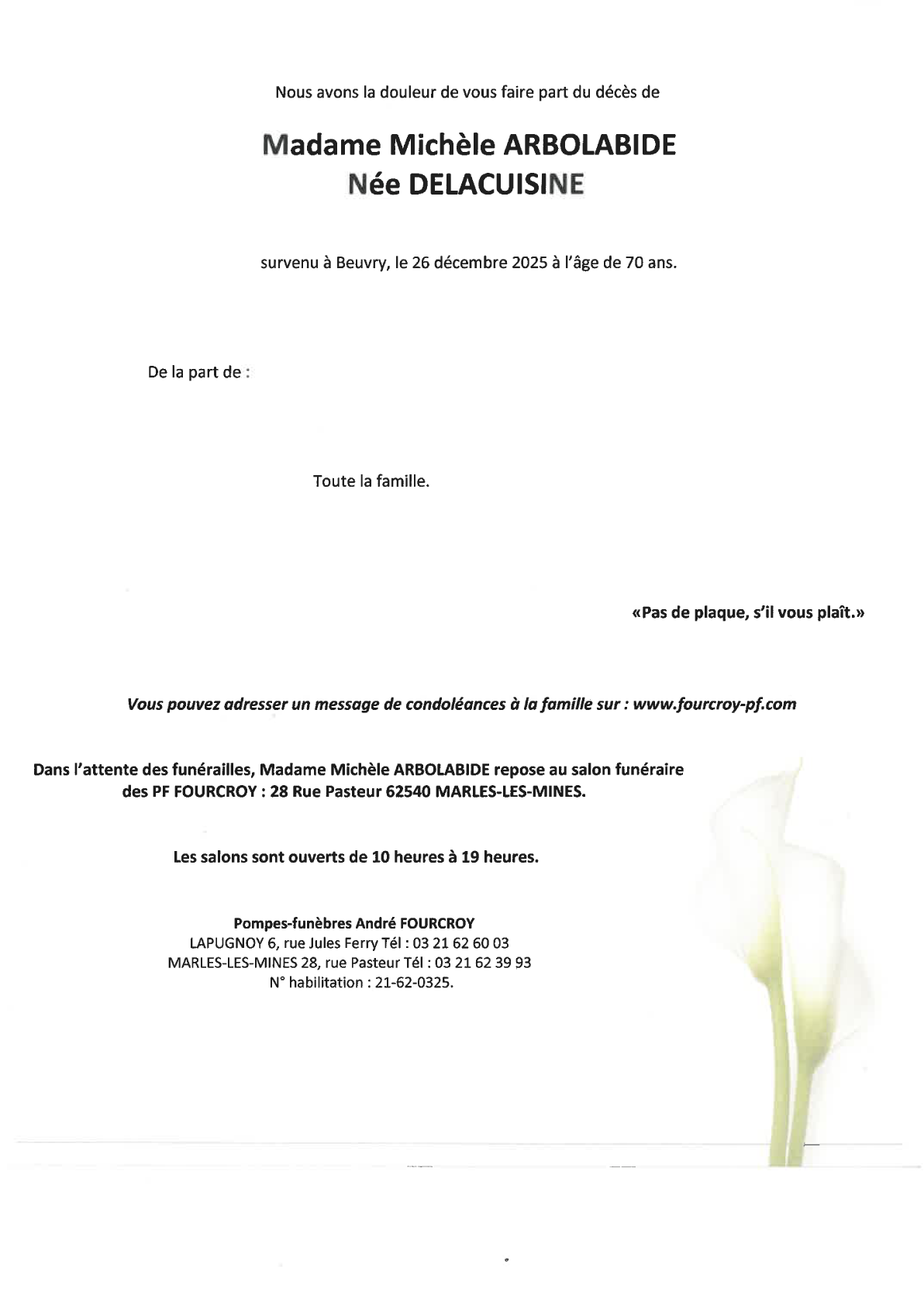Madame Michèle ARBOLABIDE née DELACUISINE