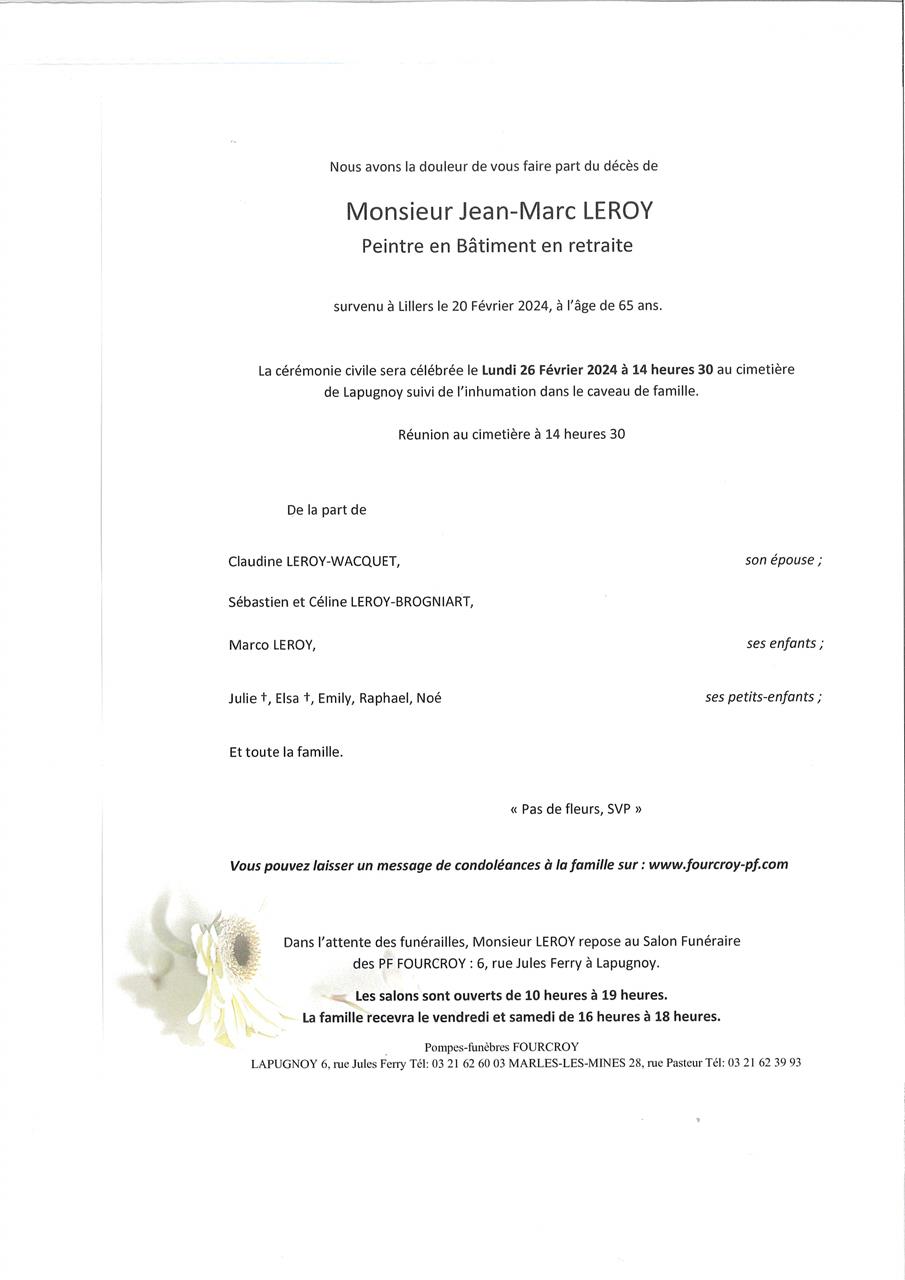 Décédé à Lillers (62190, France) le mardi 20 février 2024 à l'âge de 65 ans