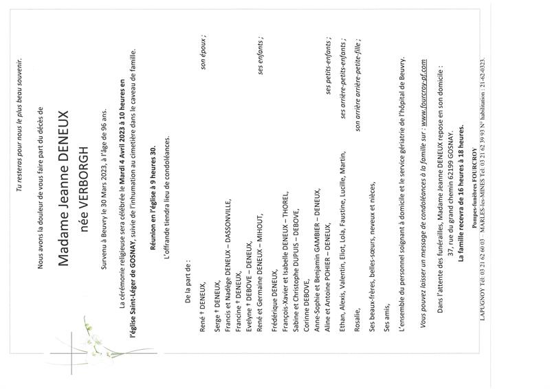 Madame Jeanne DENEUX née VERBORGH