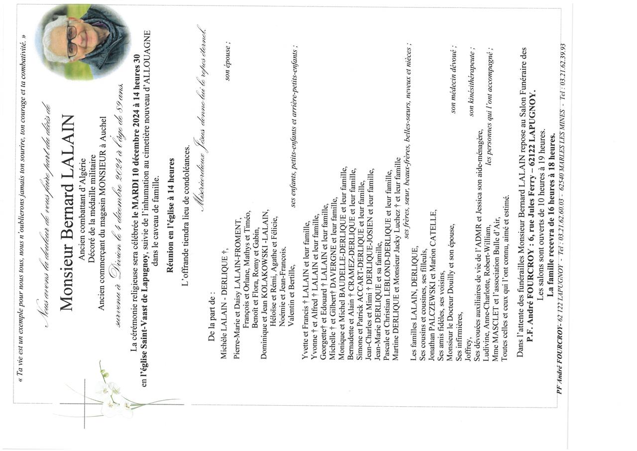 Décédé à Divion (62460, France) le mercredi 4 décembre 2024 à l'âge de 89 ans