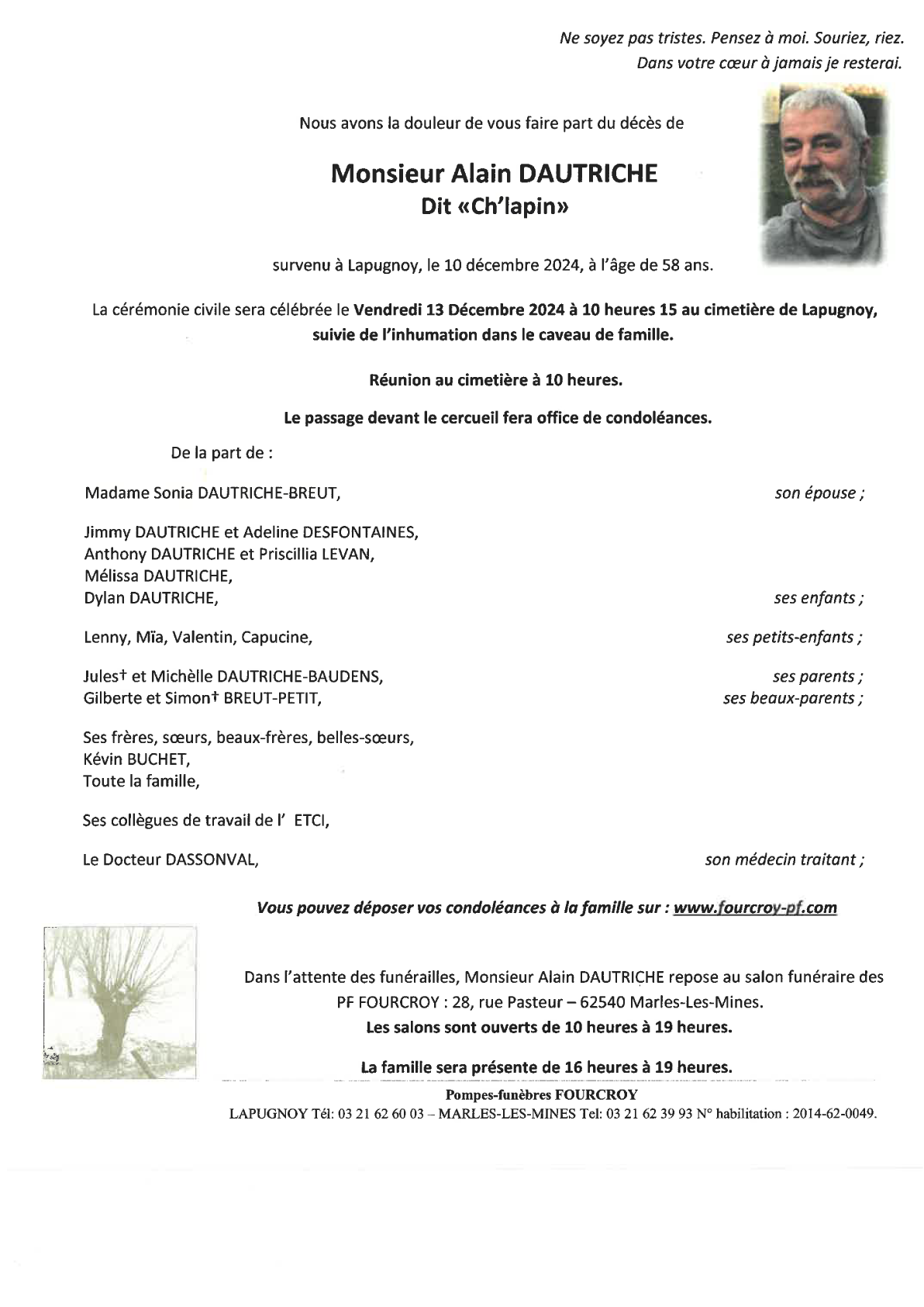 Décédé à Lapugnoy (62122, France) le mardi 10 décembre 2024 à l'âge de 58 ans