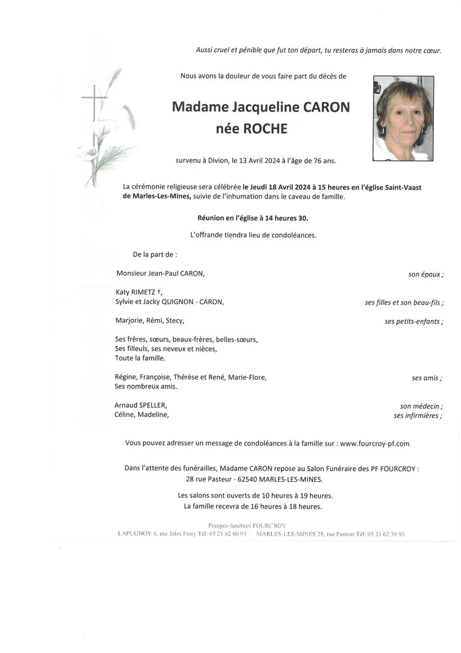 Epouse de Monsieur Jean Paul CARON