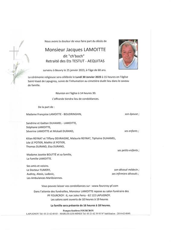 Décédé à Beuvry (62660, France) le mercredi 25 janvier 2023 à l'âge de 68 ans