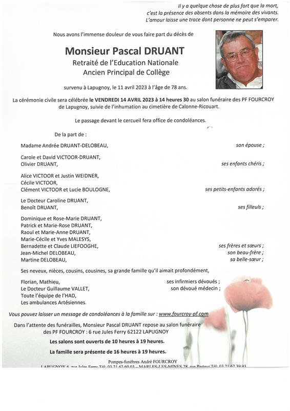 Décédé à Lapugnoy (62122, France) le mardi 11 avril 2023 à l'âge de 78 ans