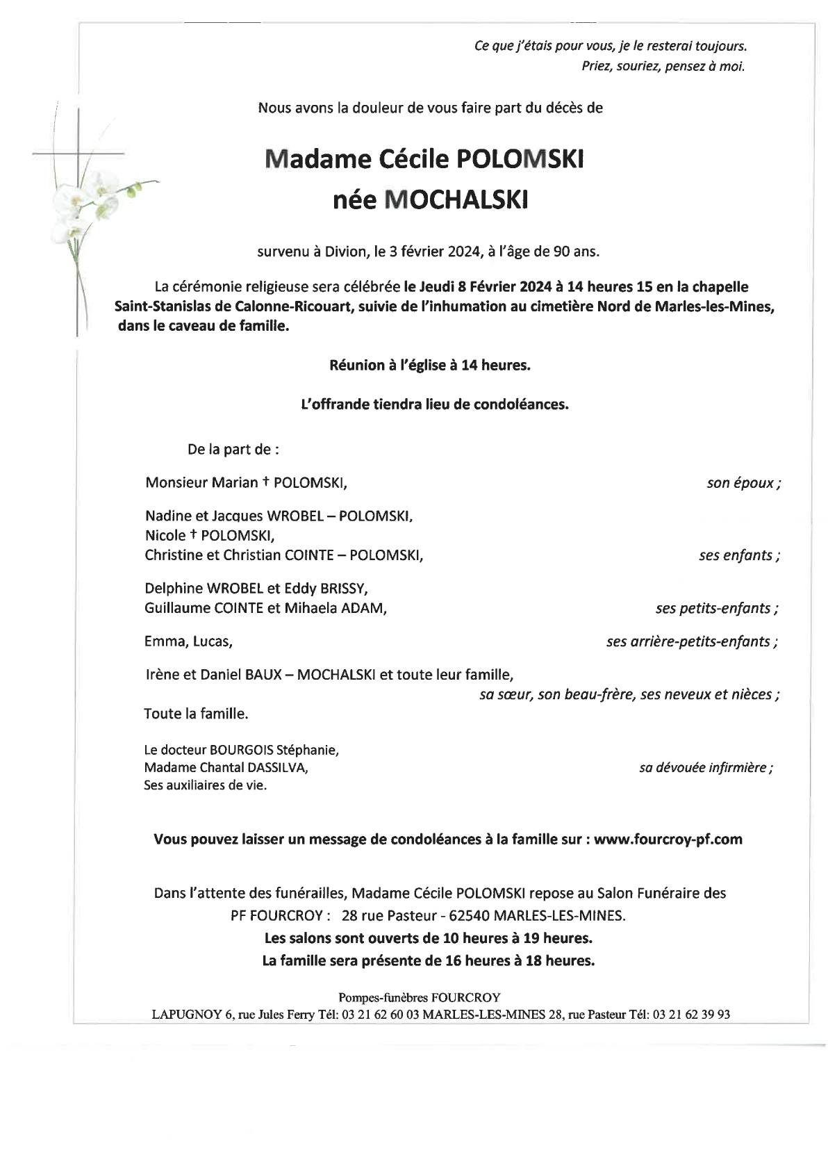 Veuve de Monsieur Marian POLOMSKI